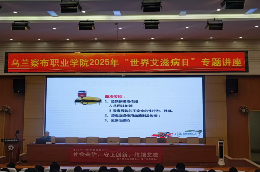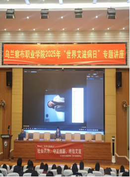 乌兰察布市疾控中心艾结科科长张国龙进行专题讲授,为现场师生深入浅出地耐心讲解了我国现在艾滋病的流行现状,艾滋病的传播途径,如何预防,短视频播放了艾滋病的相关知识的宣传,并引导同学们要增强自我保护意识,保持健康的生活方式。